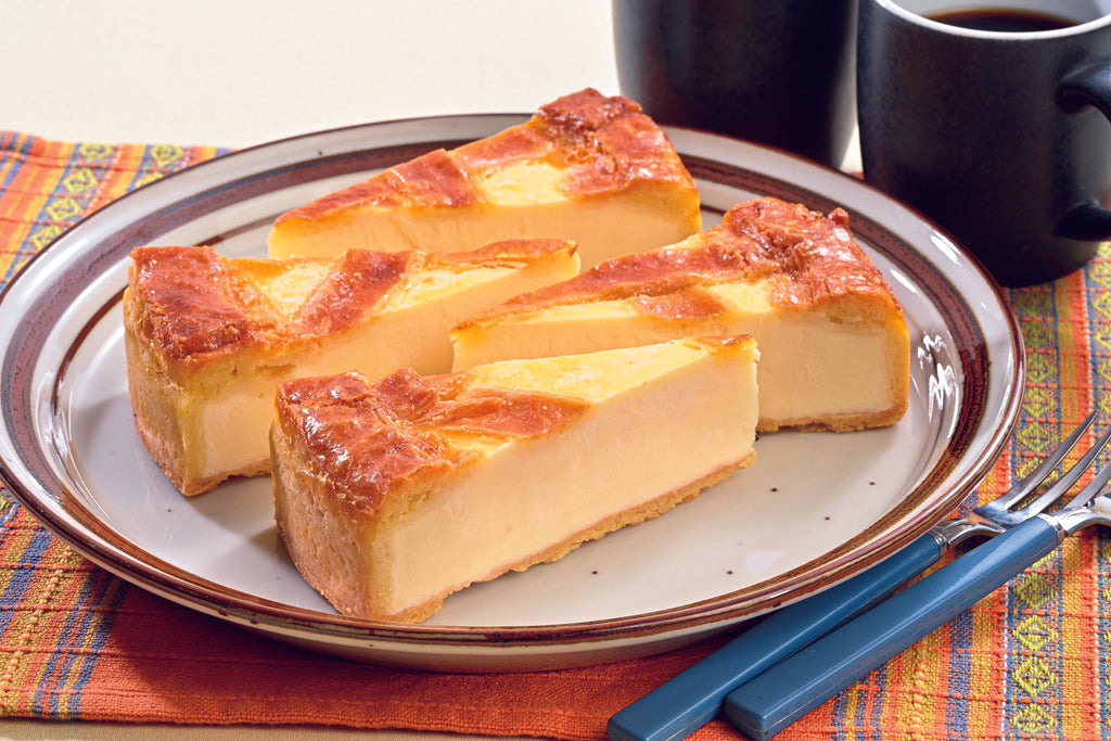 トロイカでは美味しさと品質にこだわり、平成9年から原材料のチーズ生産から取り組んでいます。 独自の製法で焼き上げたミディアム・エージングが醸し出す、濃厚でかつ口溶けの良い味わい。中はレアチーズケーキと間違えられるほどのマイルドでクリーミーな味わいが特長です。