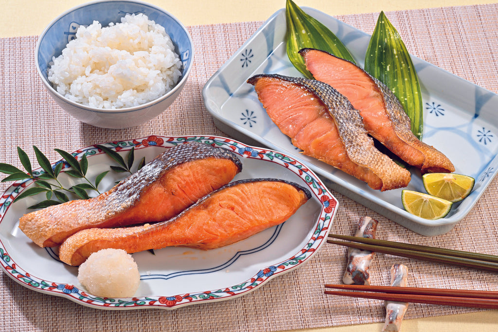内容量:秋鮭新巻4切×2、釜石サーモン養殖銀鮭4切