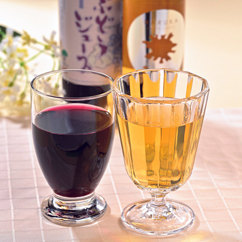 山ぶどうの酸味を和らげたジュースと、岩手県を代表するブランドりんご品種「はるか」のジュースです。ストレート果汁100%。
